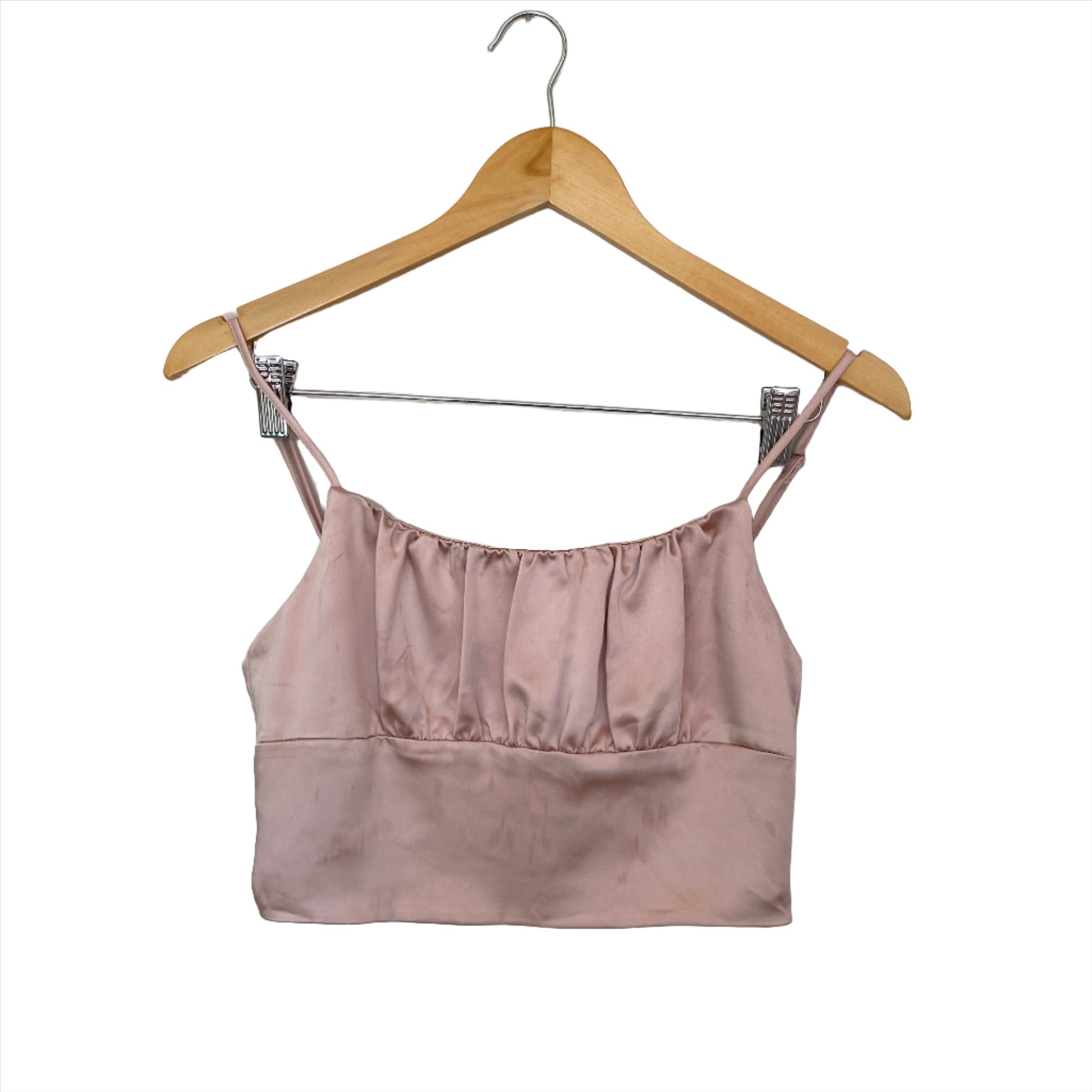 Rock a flirty and feminine look with our dusty pink crop top from Zara. Perfect for a night out with the girls, this top adds a touch of charm and style to any outfit. Embrace your playful side and stand out in this unique and trendy piece